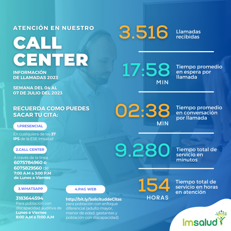 Grupos de Interés, Últimas NoticiasATENCIÓN EN NUESTRO CALL CENTER Posted on 25 julio 202325 julio 2023 by Ludwing Suarez Patiño 25 Jul AUDITORIA PACIENTE TRAZADOR EN LA UNIDAD BÁSICA DE PUENTE BARCO LEONES ATENCIÓN EN NUESTRO CALL CENTER