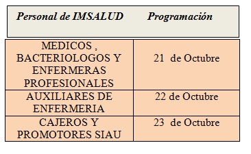 La jornada de capacitación se llevara a cabo del 21 al 23 de octubre, en dos jornadas de 7:00 am a 11:00 pm y de 2:00 pm a 5: 00 pm, en el Auditorio de la Unidad Materno Infantil del barrio la Libertad; Es importante resaltar, que la programación se realizó con los Coordinadores de área respectiva y es de preciso cumplimiento.