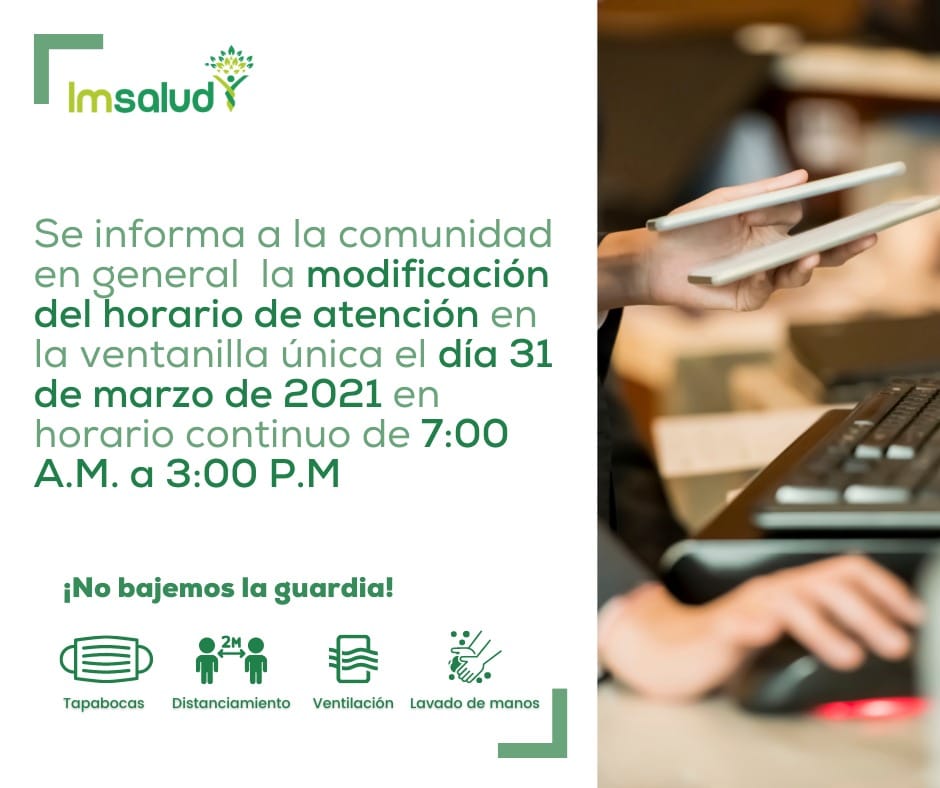 Noticias, Últimas NoticiasHORARIO DE ATENCIÓN Posted on 31 marzo 202131 marzo 2021 by Ludwing Suarez Patiño 31 Mar ¡NO BAJEMOS LA GUARDIA! JORNADA DE SALUD EN LOS SECTORES DOMINGO PÉREZ Y EL ASILO ANDRESSEN
