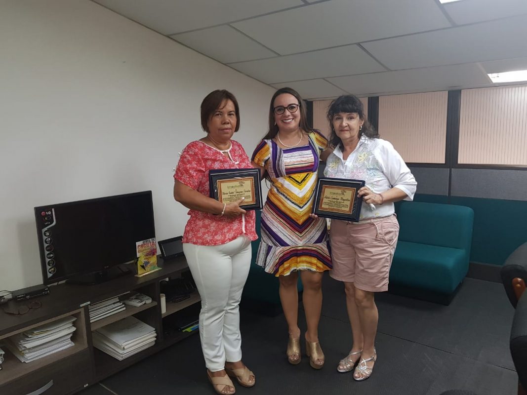 La doctora Katherine Calabró Gerente de la E.S.E Imsalud, llevó a cabo el reconocimiento a las trabajadoras, Maria Isabel Tarazona y Adela Camargo por su compromiso, esfuerzo y dedicación con la empresa, quienes hoy se encuentran pensionadas, felices disfrutando de su familia y seres queridos.